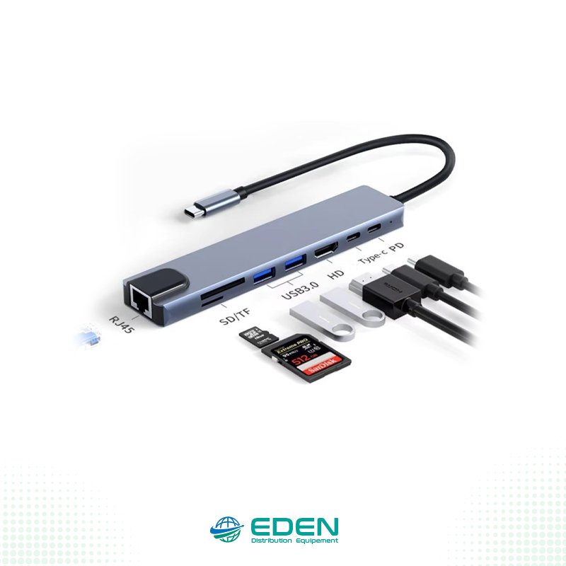 Station d’accueil USB-C 8 en 1La station d’accueil USB-C 8-en-1 est une solution compacte et polyvalente pour étendre instantanément la connectivité