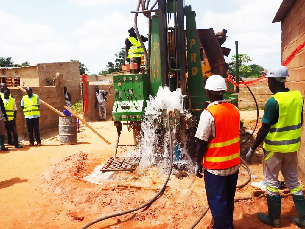 Forage d’eau potable : Étude de sol, réalisation de forages profonds, installation de pompes et systèmes de captage.